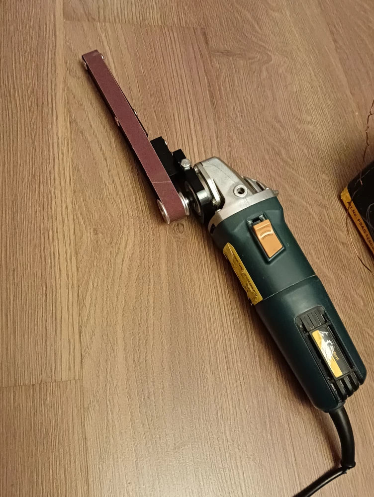 Этот инструмент подходит для вас, чтобы преобразовать угловую шлифовальную машину в шлифовальную ленточную машину, которая является полезной для вас, ее легко использовать, что может сэкономить ваше время и деньги, приходите и попробуйте, он не позволит вы вниз.